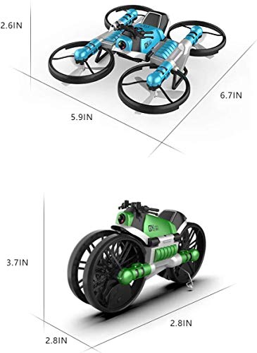 - 2-IN-1 DOUBLE MODE: This is not only a Motorcycle, but also a Quadcopter Drone, feel free to switch deformation from land travel to air flight, bring you endless fun!