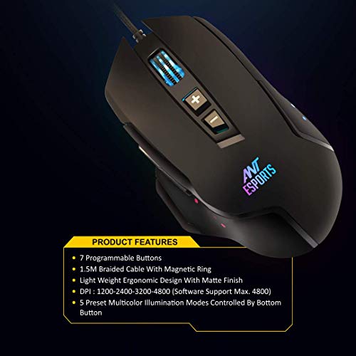 - Ant Esports GM300 optical Gaming Mouse featuring braided cables